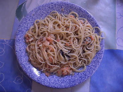 When the onion begins to brown, add the salmon, stirring often blanch one minute and then add a drizzle of olive oil and a dash of water.